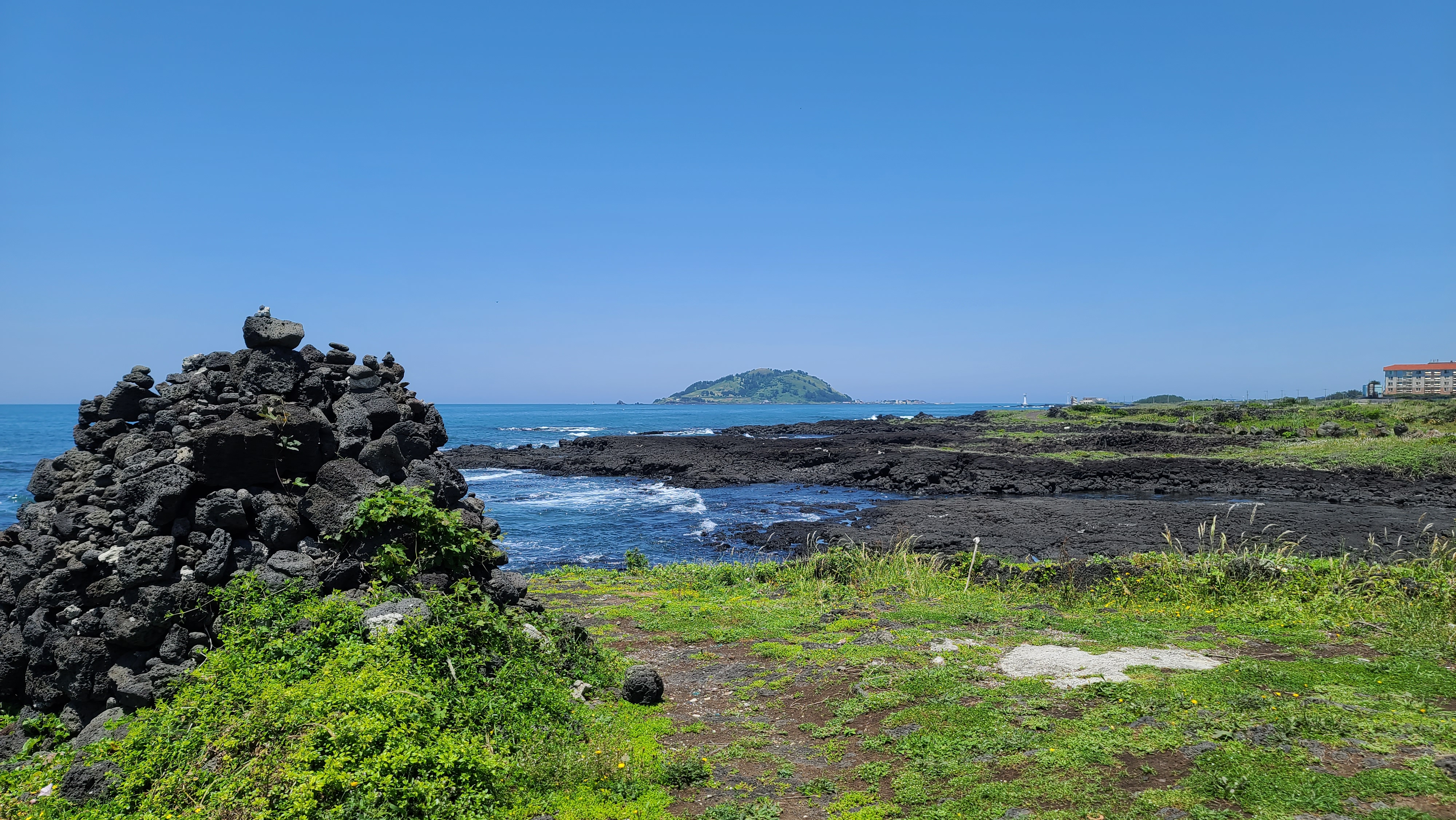 이쯤에서 해녀콩자생지와 비양도가 보이기 시작합니다.