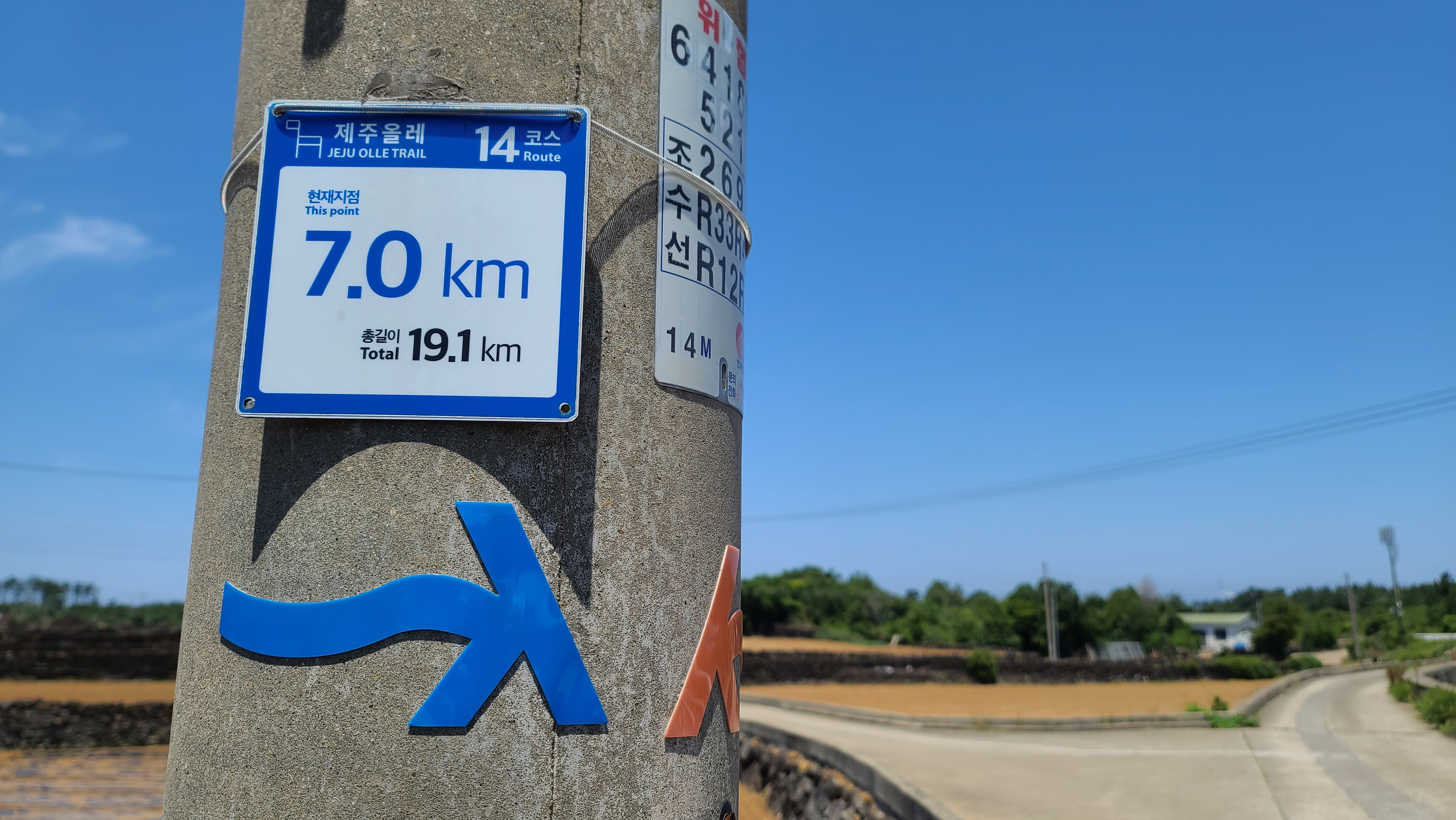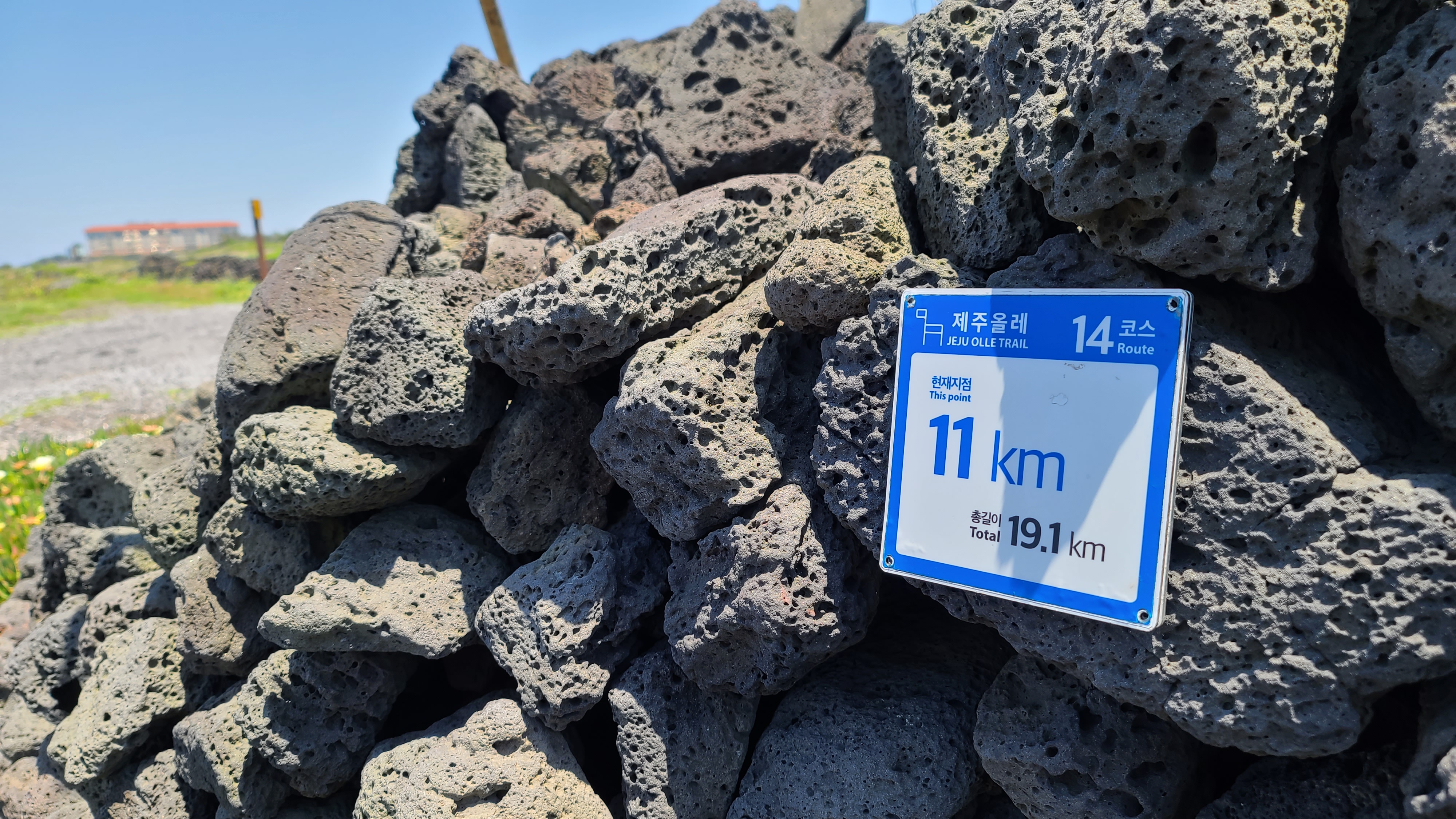 월령해안 14코스 이정표 지금에서 11km dkvdfh 9km를 더 날아가야 합니당